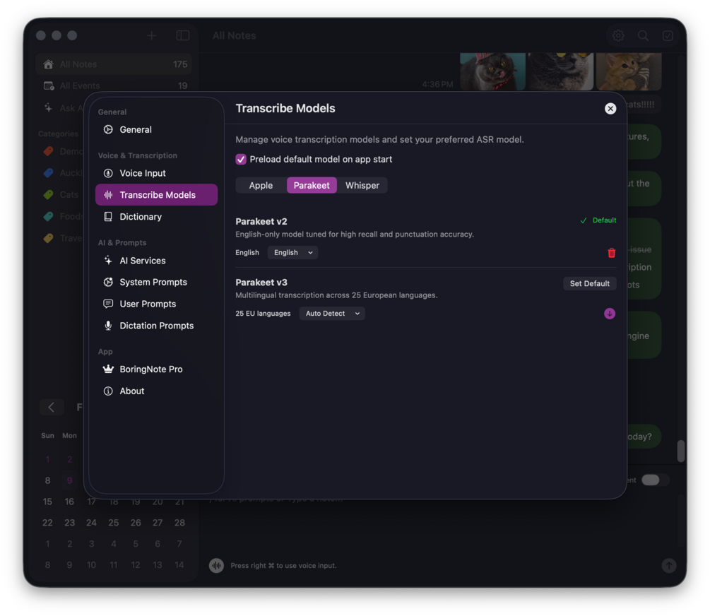 - Speak instead of typing — transcribe instantly using advanced ASR models such as Parakeet, OpenAI Whisper, and Apple Intelligence.