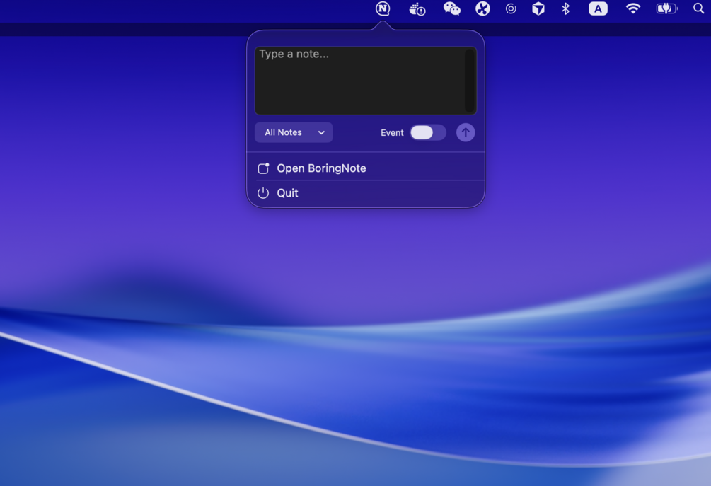 - Send notes directly from the menu bar toolbar, without opening the main window.